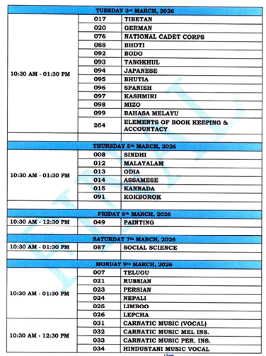 2. The date of conduct of entrance examinations meant for the students of Class XII have been taken into consideration and efforts have been made to complete the examinations much before the entrance examinations. This will help the students in better time management for both the Board and entrance examinations.