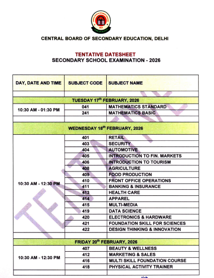 Note: CBSE has also clarified that the current date sheet is tentative. The final date sheet will be issued after schools submit the final list of candidates.